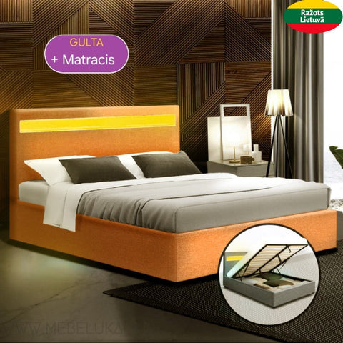 Moderna gulta ar matraci un LED apgaismojumu