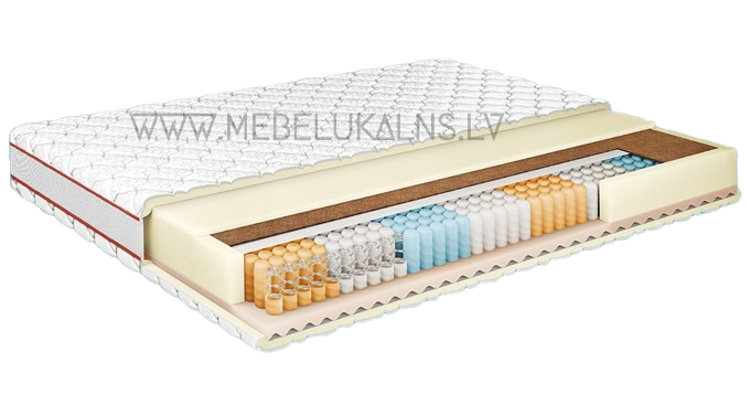 • Viena matrača puse: kokosšķiedras slānis ar dabīgo lateksu 10 mm un elastīgas putas 13 mm biezumā – papildu stingrībai.